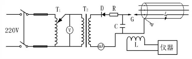 直流高壓閃絡測試法(簡稱直閃法)用于測量閃絡擊穿性故障,即故障點電阻極高,在用高壓試驗設備把電壓升到一定值時就產生閃絡擊穿的故障。